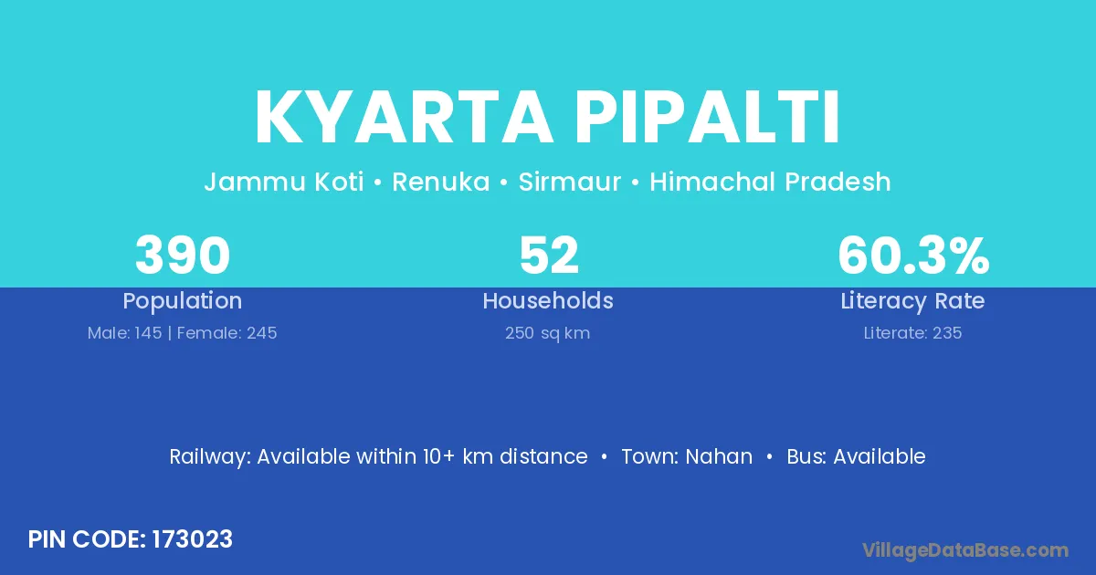 According to Census 2011 information, the village code of Kyarta Pipalti village is 173023.