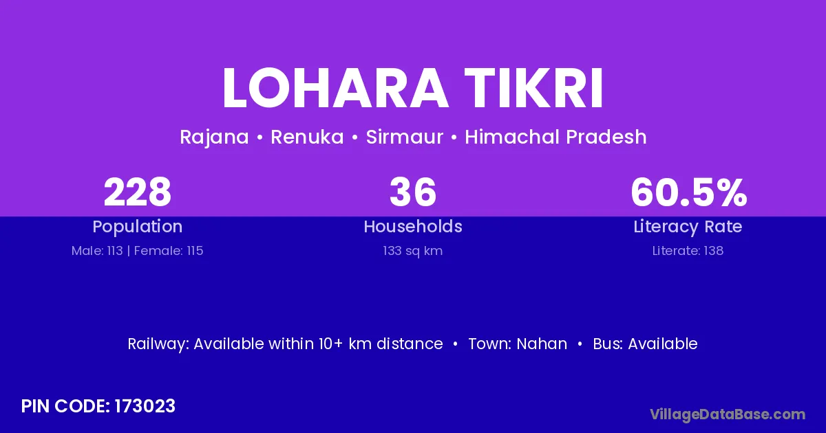 According to Census 2011 information, the village code of Lohara Tikri village is 173023.