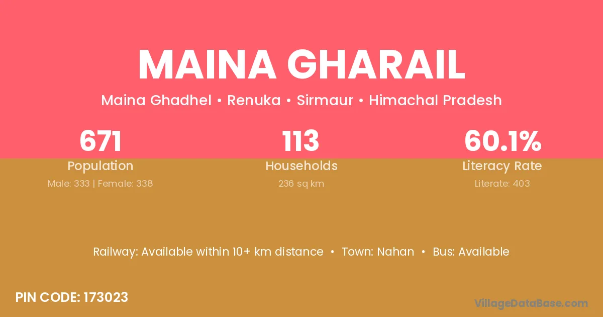 According to Census 2011 information, the village code of Maina Gharail village is 173023.