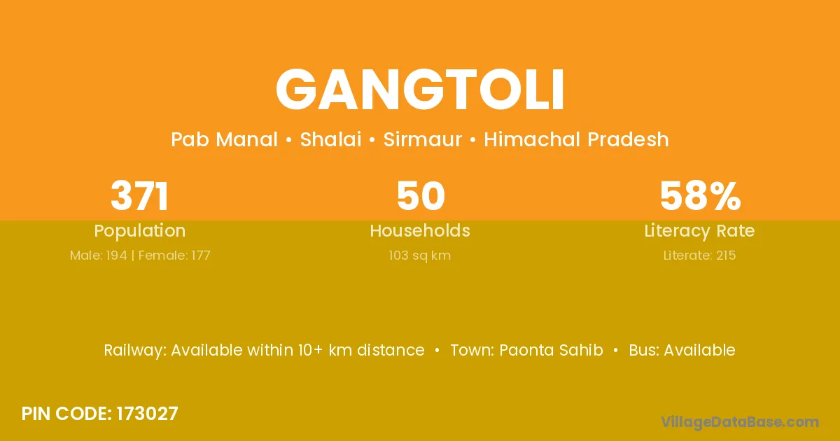 Paonta Sahib is the nearest town to Gangtoli village for major economic activities