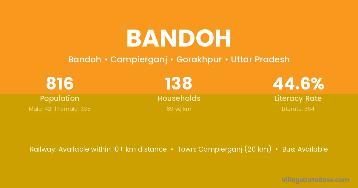 Bandoh village has a total population of 8 people, of which 5 are males and 3 are females.
