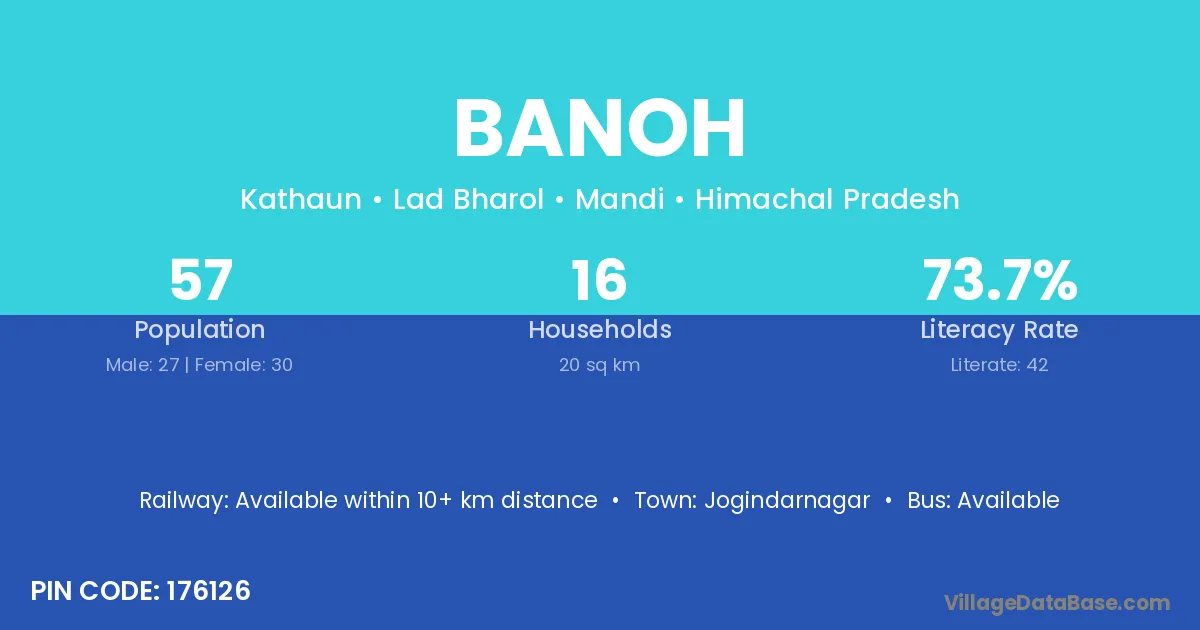 The literacy rate of Banoh village is 68.30%. Male literacy stands at 75.22% and female literacy at 61.89%.