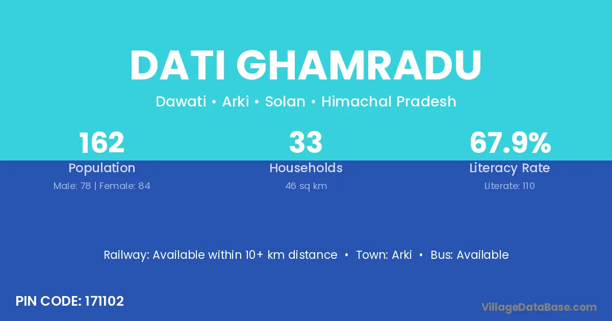 Arki is the nearest town to Dati Ghamradu village for major economic activities