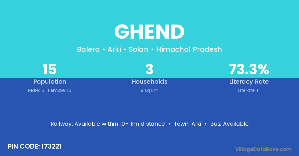 According to Census 2011 information, the village code of Ghend village is 173221.