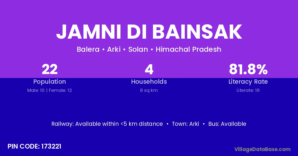 Arki is the nearest town to Jamni Di Bainsak village for major economic activities