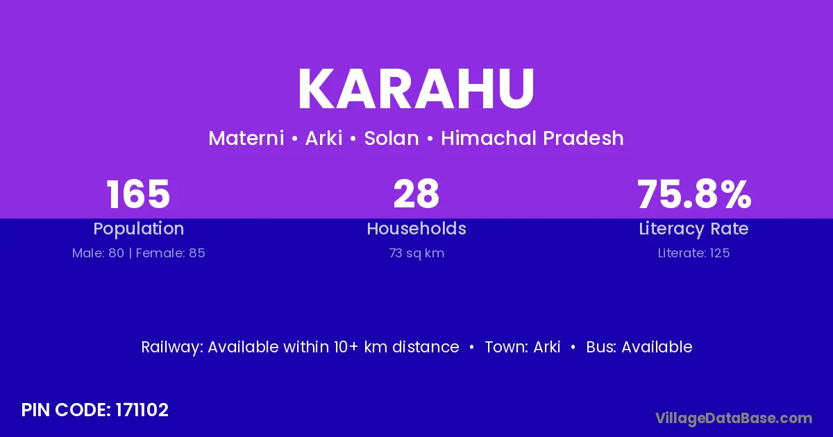 Karahu village has a total population of 165 people, of which 80 are males and 85 are females.