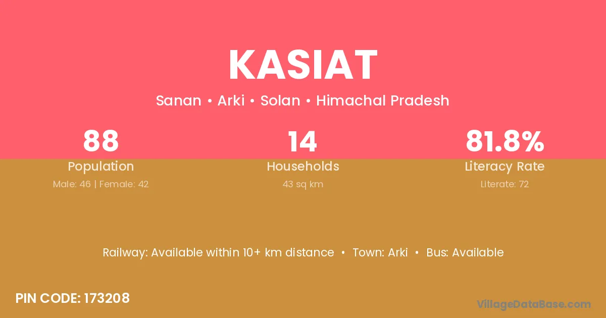 Kasiat village is located in the Arki Tehsil of the Solan district in Himachal Pradesh .