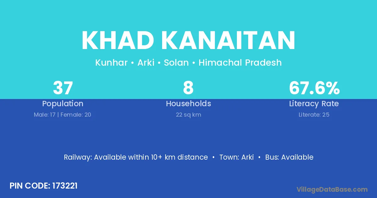 Khad Kanaitan village has a total population of 37 people, of which 17 are males and 20 are females.