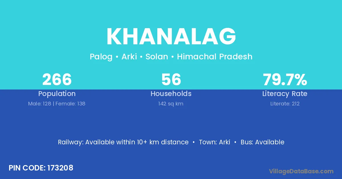 According to Census 2011 information, the village code of Khanalag village is 173208.