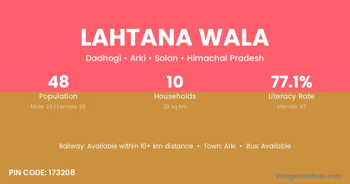 Arki is the nearest town to Lahtana Wala village for major economic activities