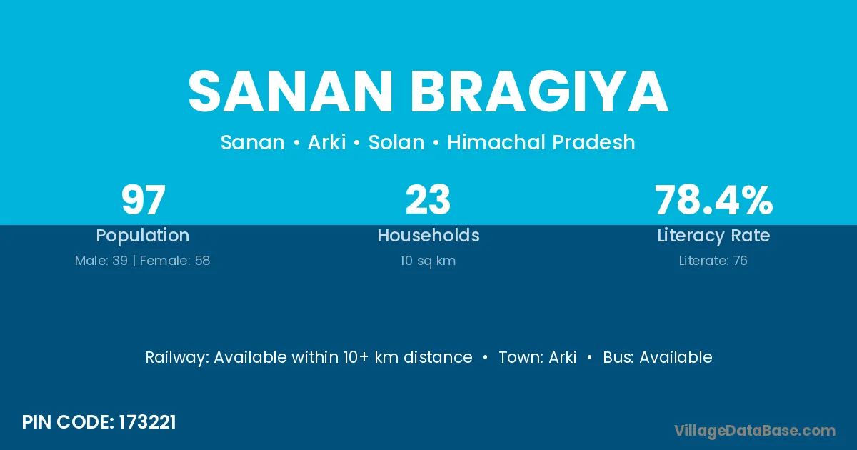 Arki is the nearest town to Sanan Bragiya village for major economic activities