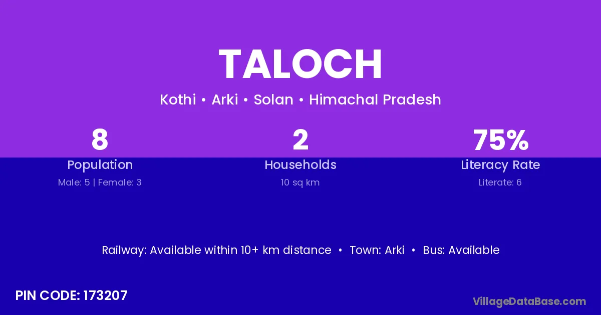 According to Census 2011 information, the village code of Taloch village is 173207.