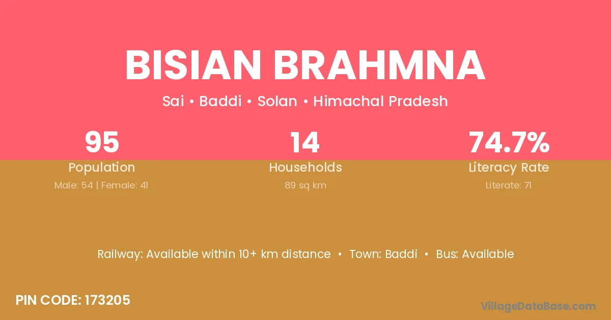 Bisian Brahmna village has a total population of 95 people, of which 54 are males and 41 are females.