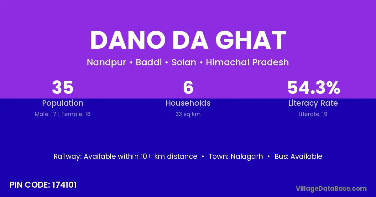 Nalagarh is the nearest town to Dano Da Ghat village for major economic activities