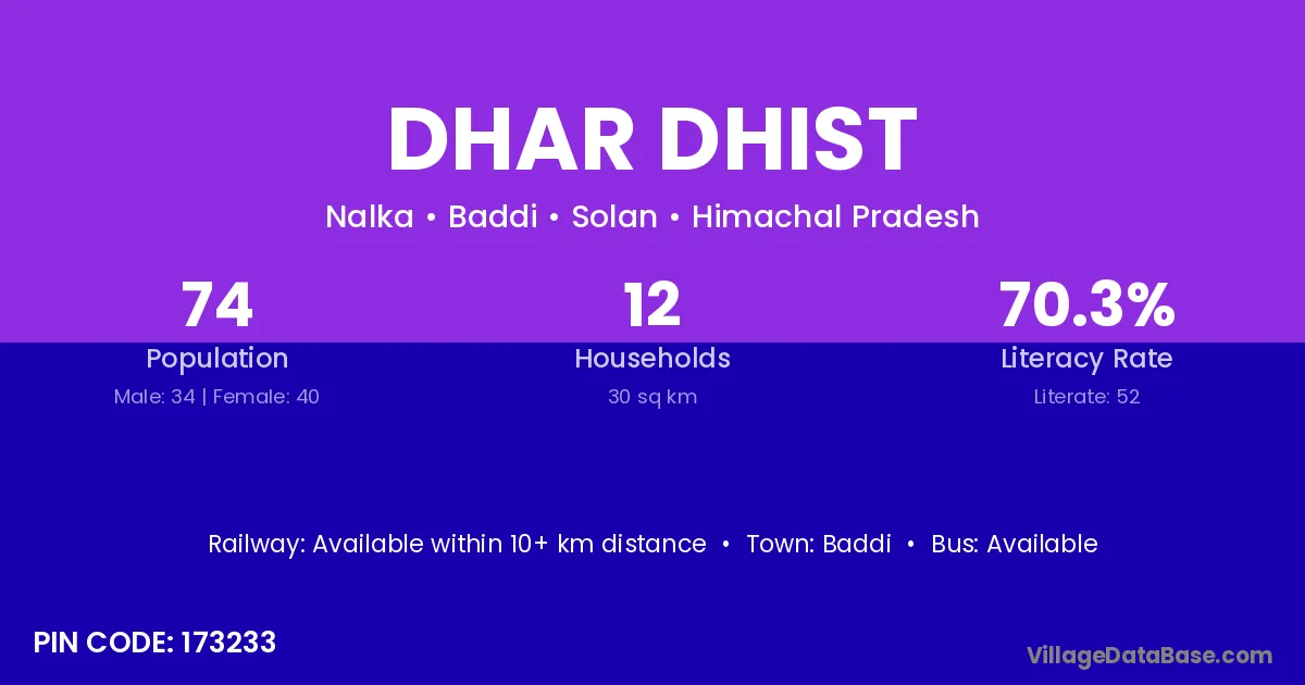 Baddi is the nearest town to Dhar Dhist village for major economic activities