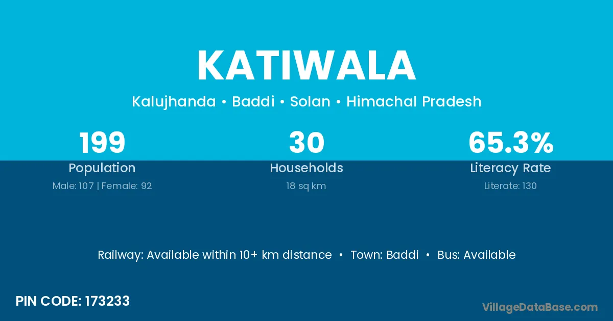 According to Census 2011 information, the village code of Katiwala village is 173233.