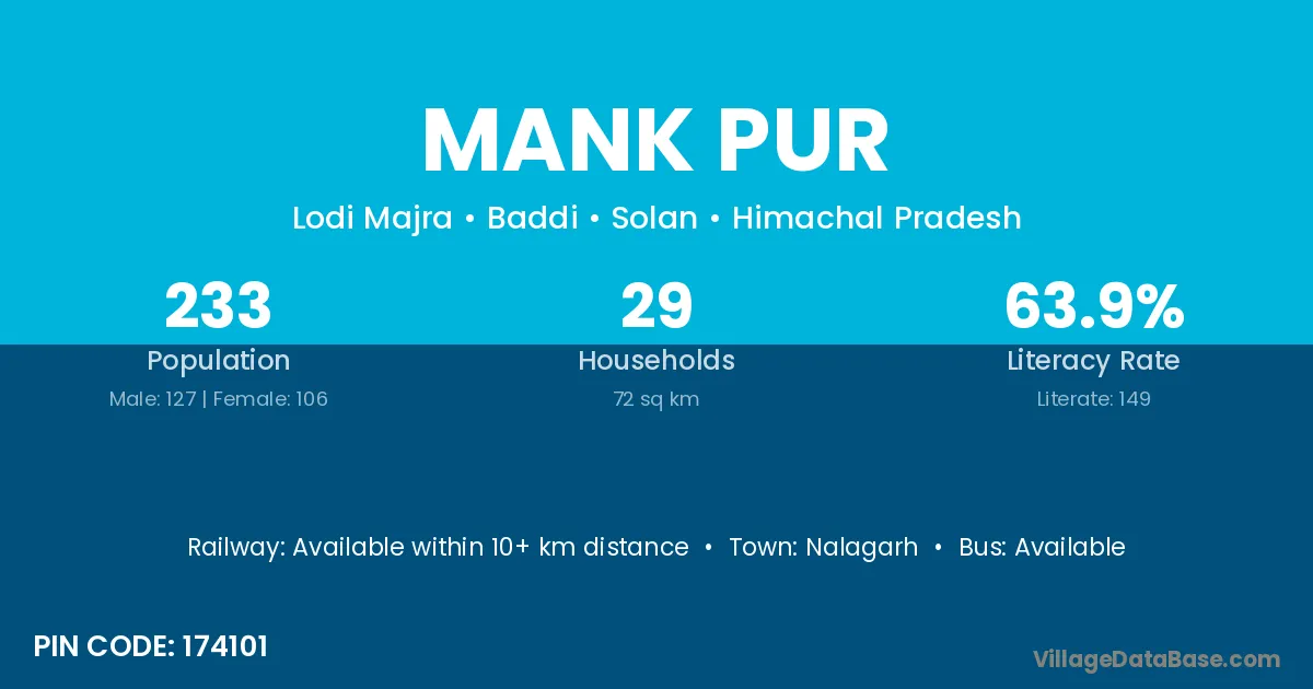 Nalagarh is the nearest town to Mank Pur village for major economic activities