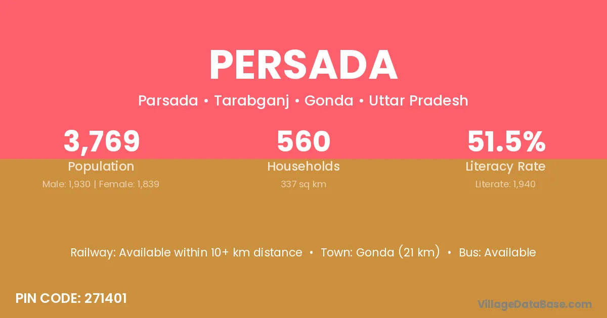 The literacy rate of Persada village is 52.94%. Male literacy stands at 71.43% and female literacy at 40.00%.