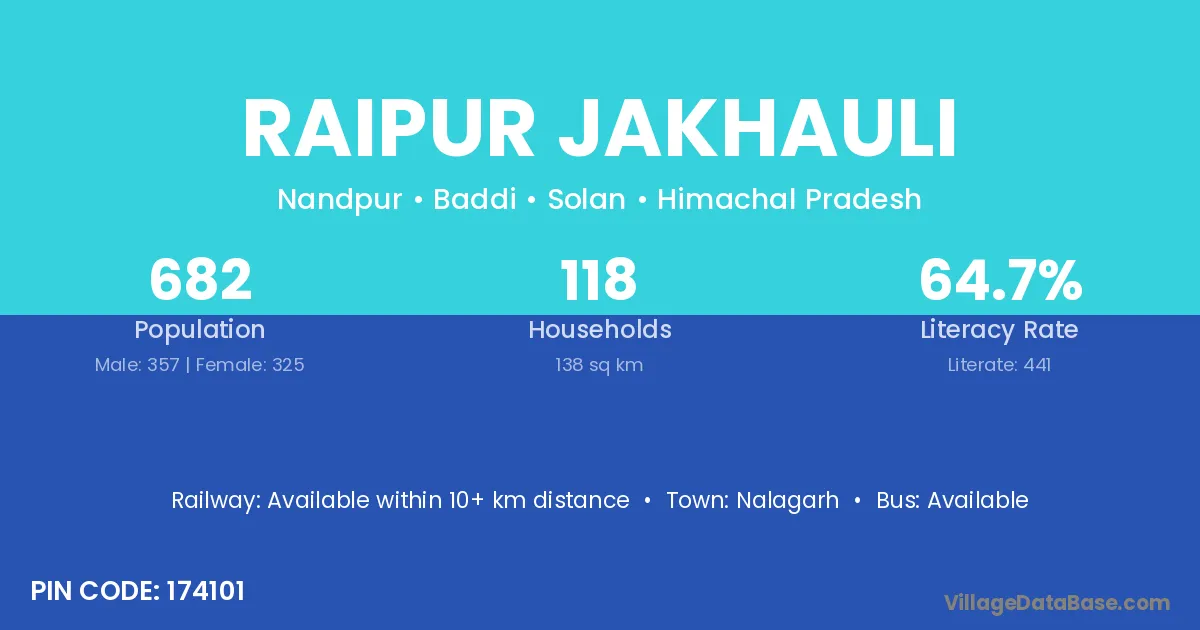 Nalagarh is the nearest town to Raipur Jakhauli village for major economic activities
