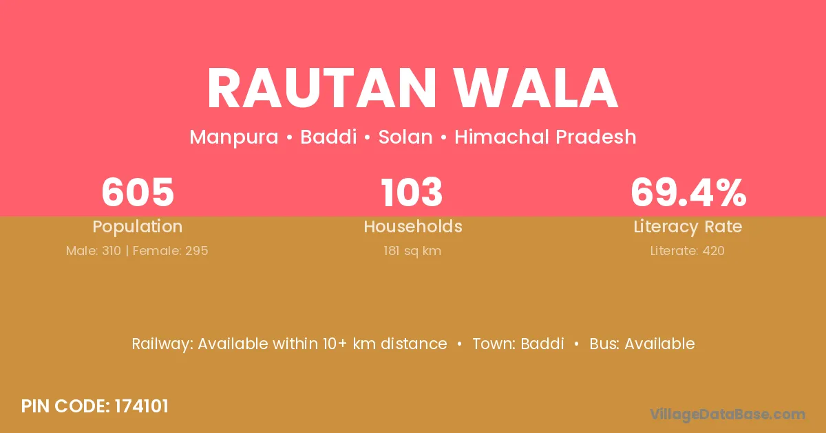 Baddi is the nearest town to Rautan Wala village for major economic activities