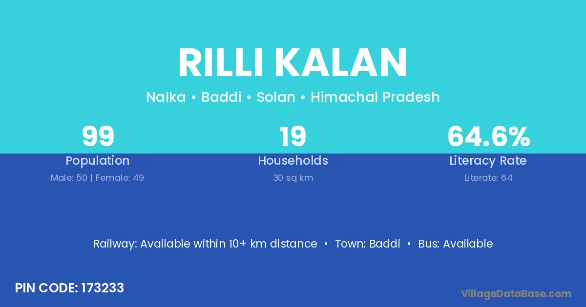 Baddi is the nearest town to Rilli Kalan village for major economic activities