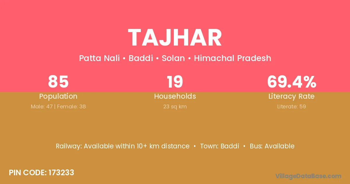 Baddi is the nearest town to Tajhar village for major economic activities