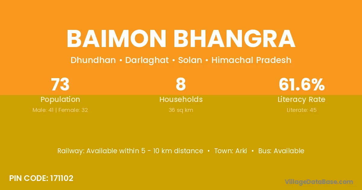 Arki is the nearest town to Baimon Bhangra village for major economic activities