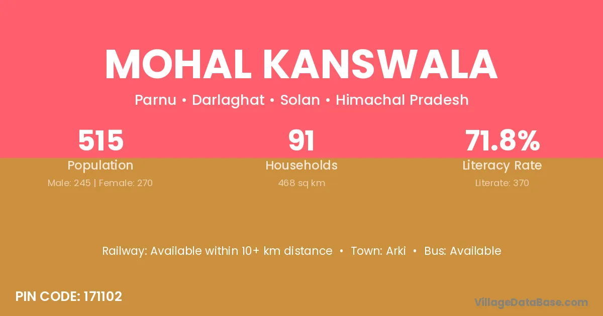 According to Census 2011 information, the village code of Mohal Kanswala village is 171102.