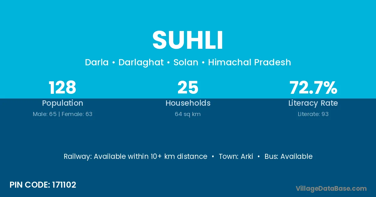 Arki is the nearest town to Suhli village for major economic activities