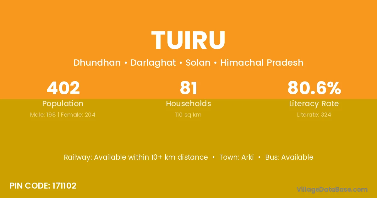 Tuiru village is located in the Darlaghat Tehsil of the Solan district in Himachal Pradesh .