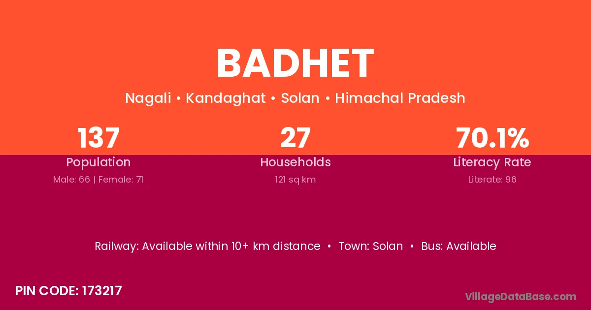 Solan is the nearest town to Badhet village for major economic activities