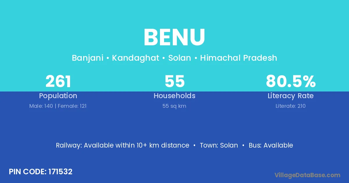 Solan is the nearest town to Benu village for major economic activities