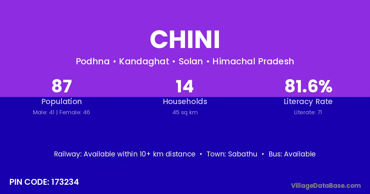 According to Census 2011 information, the village code of Chini village is 173234.