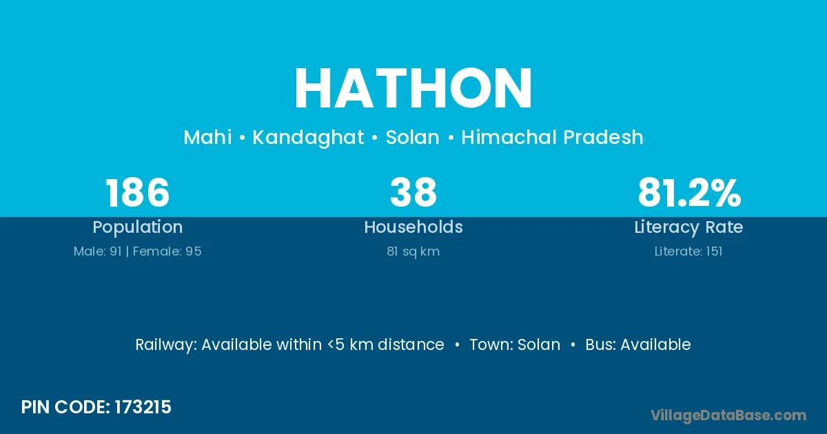 Solan is the nearest town to Hathon village for major economic activities