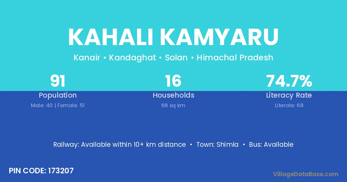 Kahali Kamyaru village has a total population of 91 people, of which 40 are males and 51 are females.