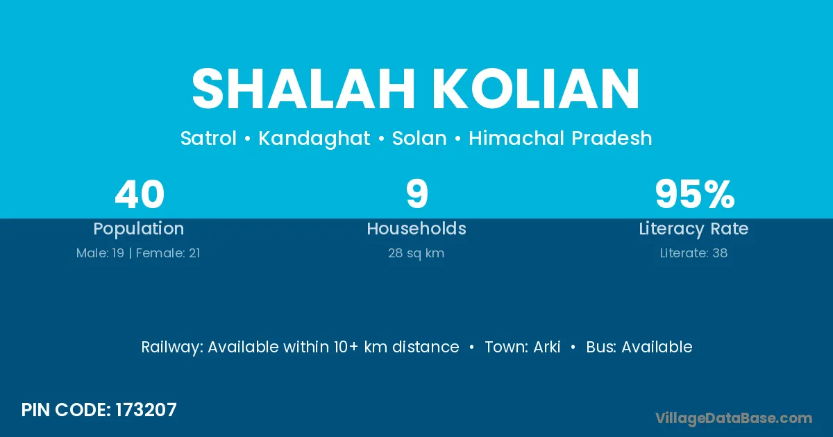 Arki is the nearest town to Shalah Kolian village for major economic activities