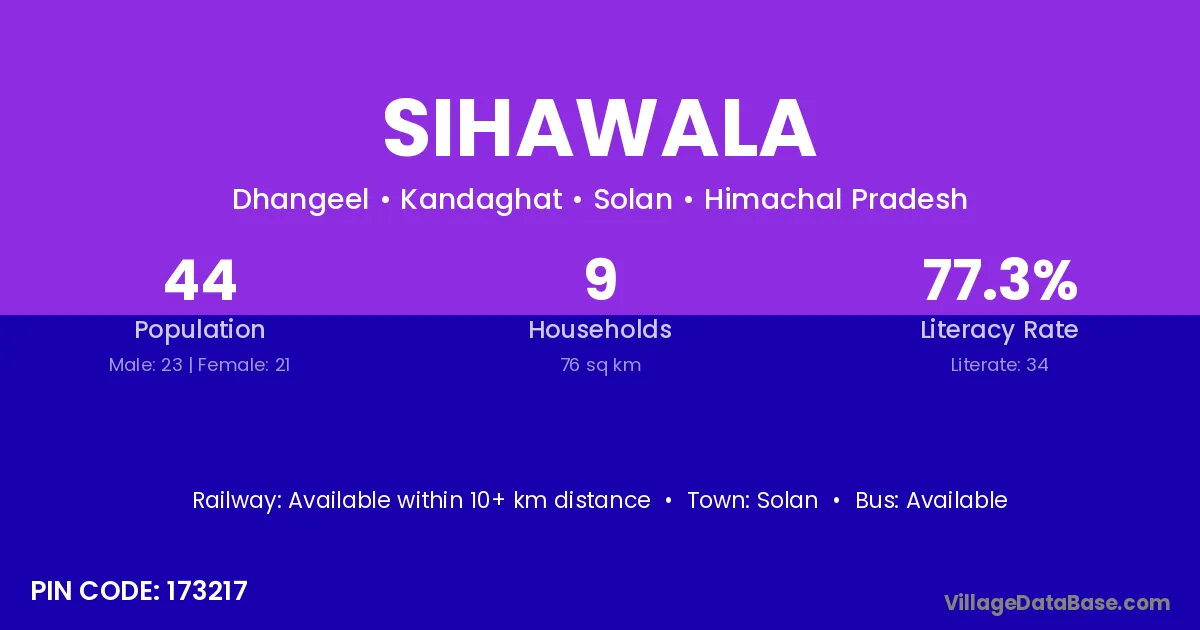 Solan is the nearest town to Sihawala village for major economic activities