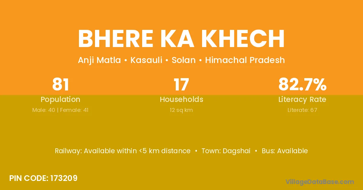 Dagshai is the nearest town to Bhere Ka Khech village for major economic activities