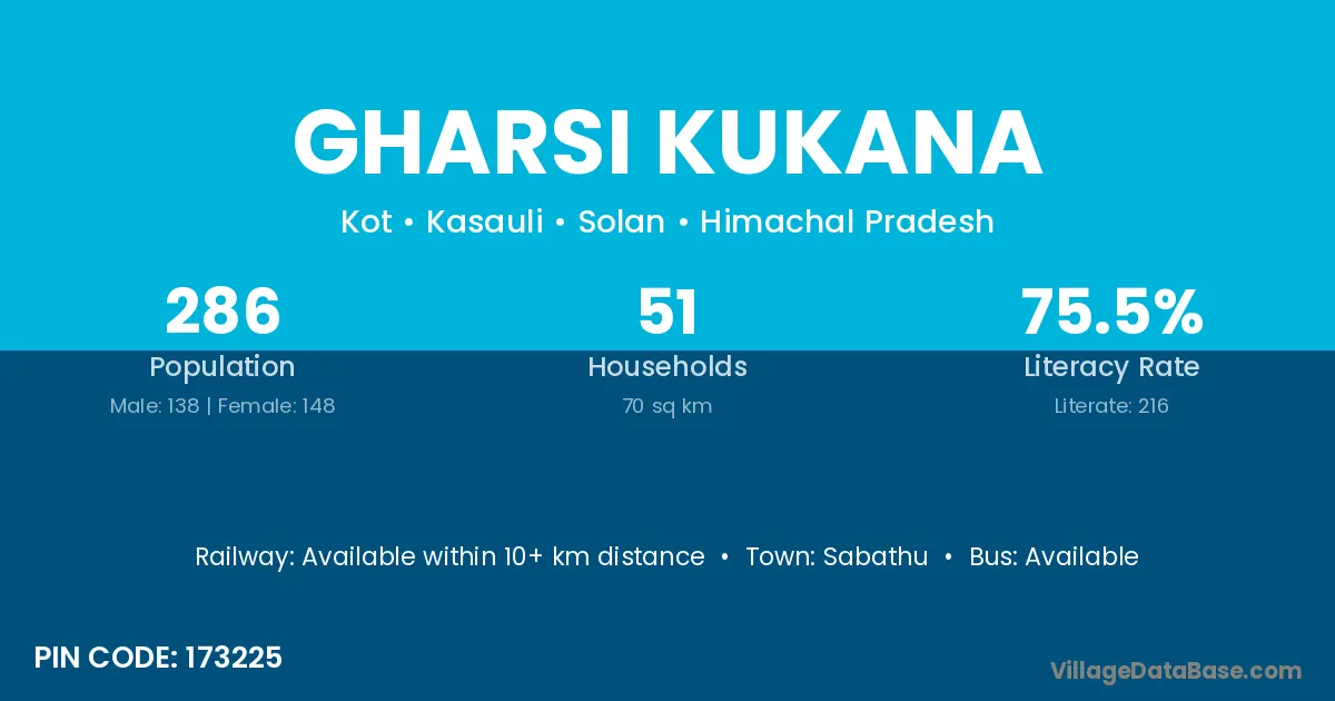 Sabathu is the nearest town to Gharsi Kukana village for major economic activities