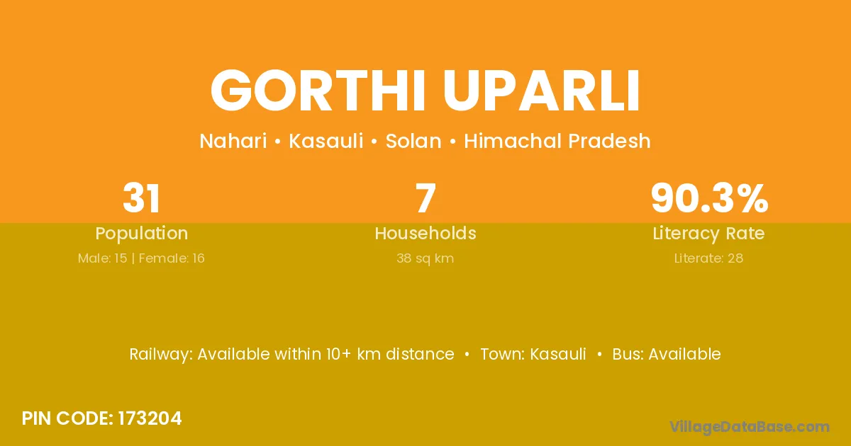 According to Census 2011 information, the village code of Gorthi Uparli village is 173204.