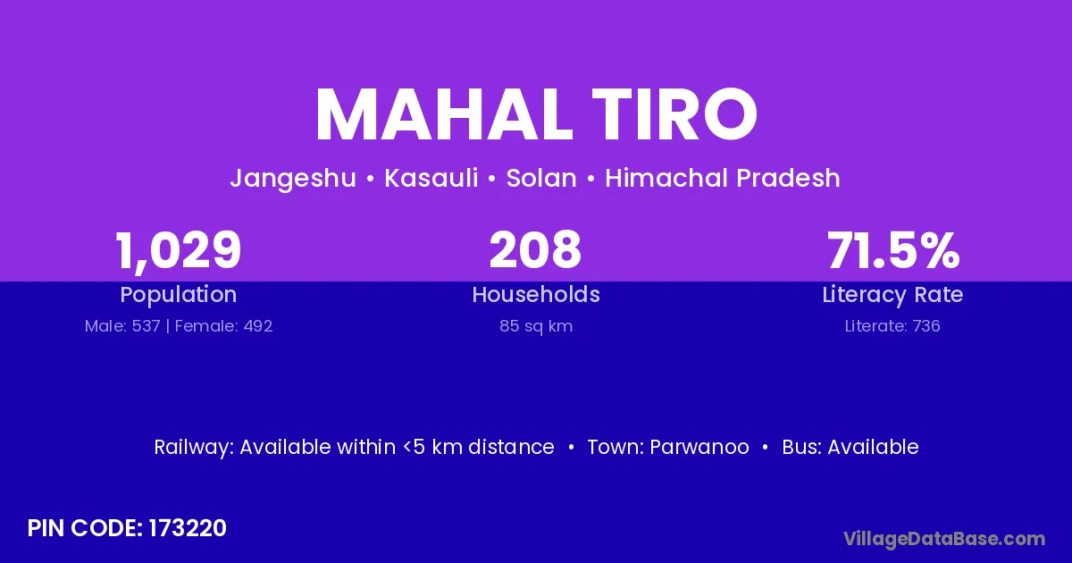 Parwanoo is the nearest town to Mahal Tiro village for major economic activities