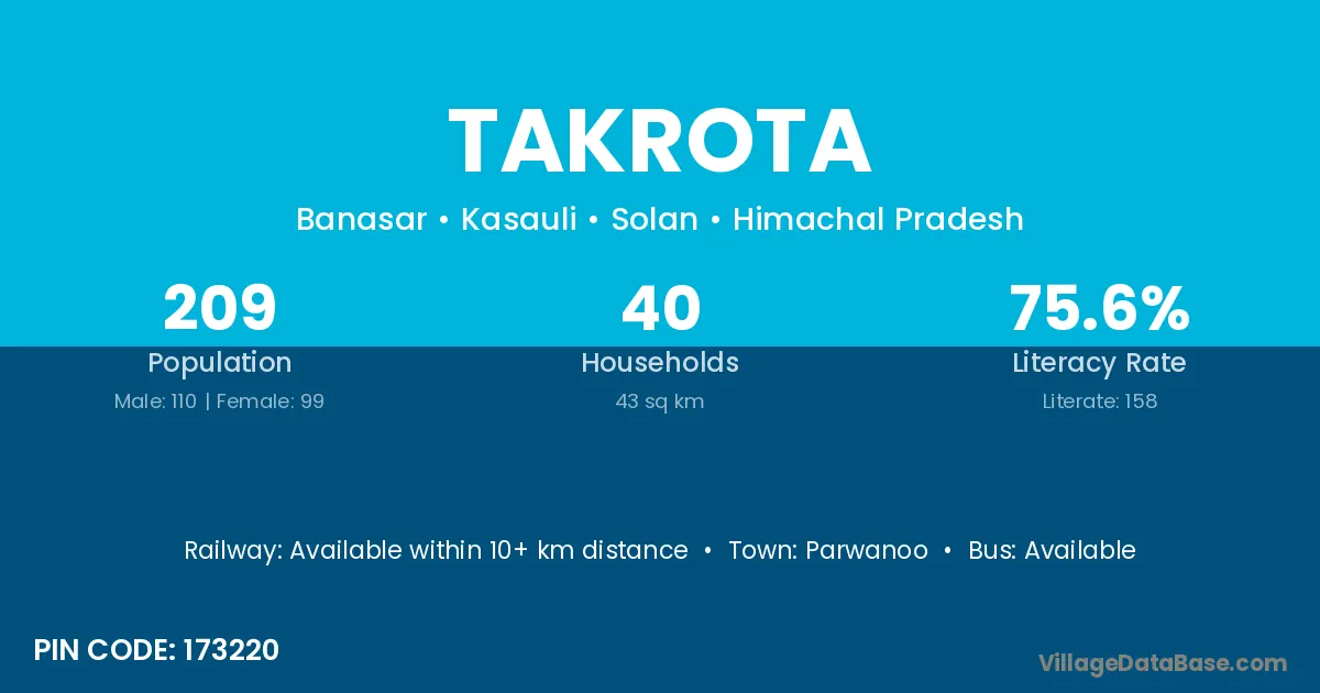 Parwanoo is the nearest town to Takrota village for major economic activities