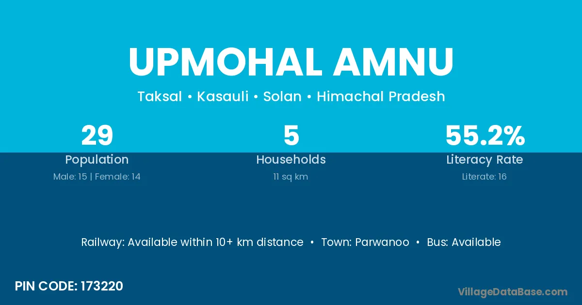 Parwanoo is the nearest town to Upmohal Amnu village for major economic activities