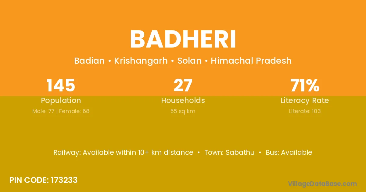 According to Census 2011 information, the village code of Badheri village is 173233.