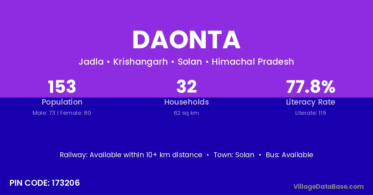 Solan is the nearest town to Daonta village for major economic activities