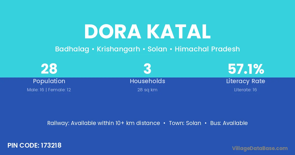 According to Census 2011 information, the village code of Dora Katal village is 173218.