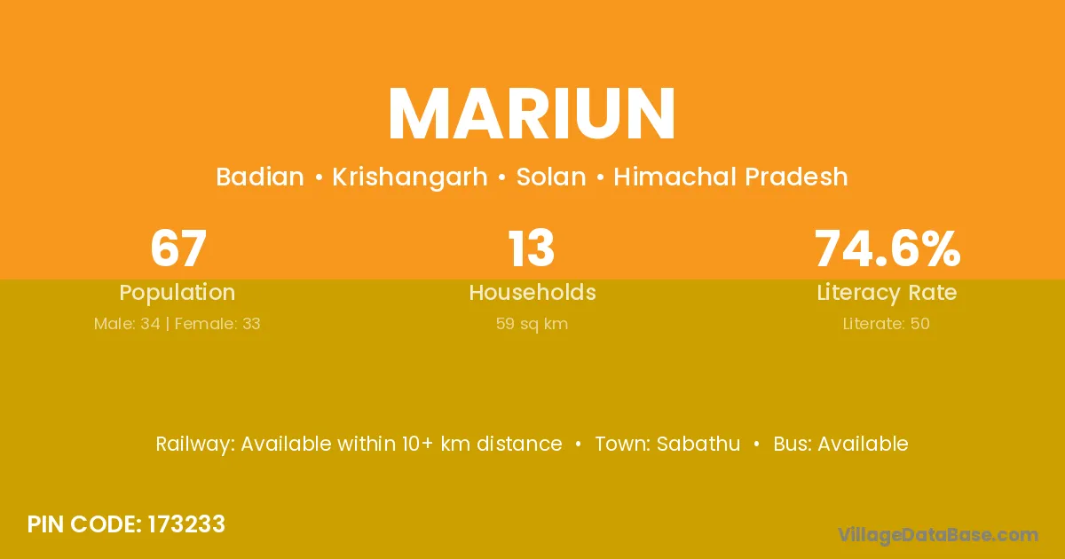 Sabathu is the nearest town to Mariun village for major economic activities