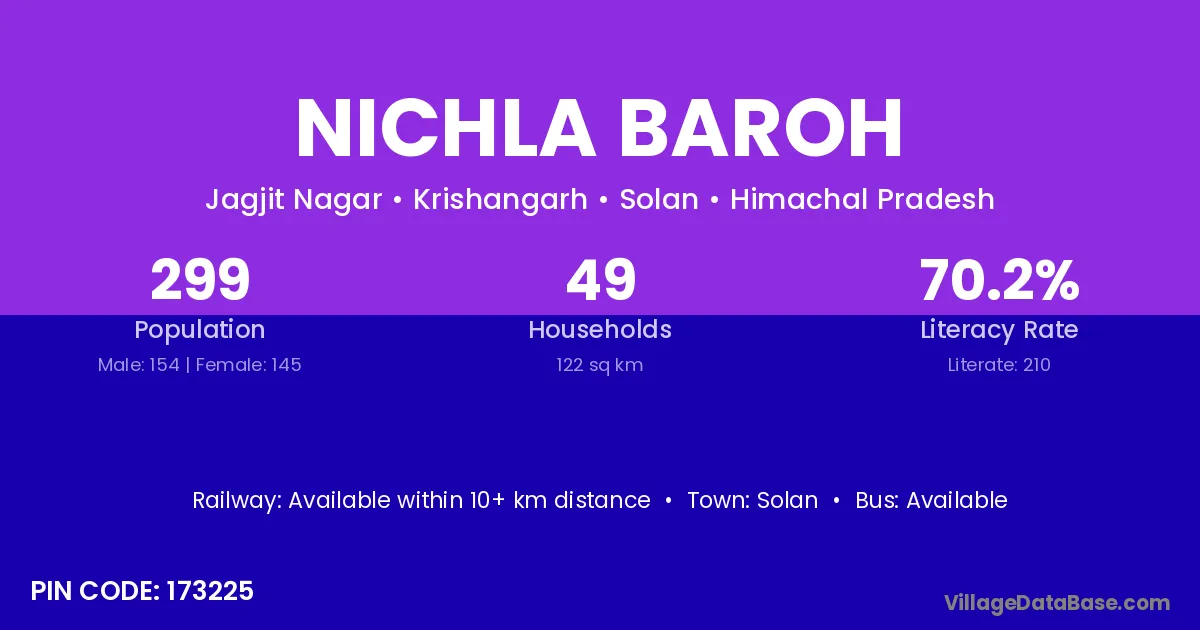 Solan is the nearest town to Nichla Baroh village for major economic activities