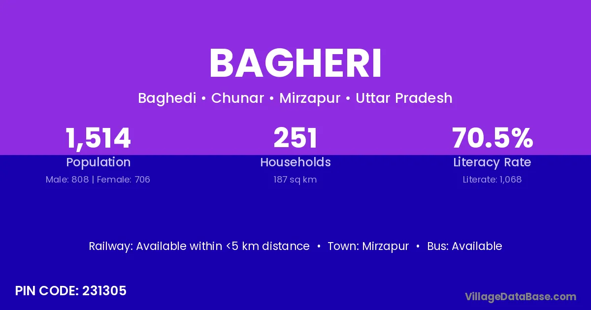 According to Census 2011 information, the village code of Bagheri village is 174101.