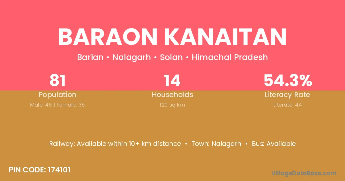 Nalagarh is the nearest town to Baraon Kanaitan village for major economic activities
